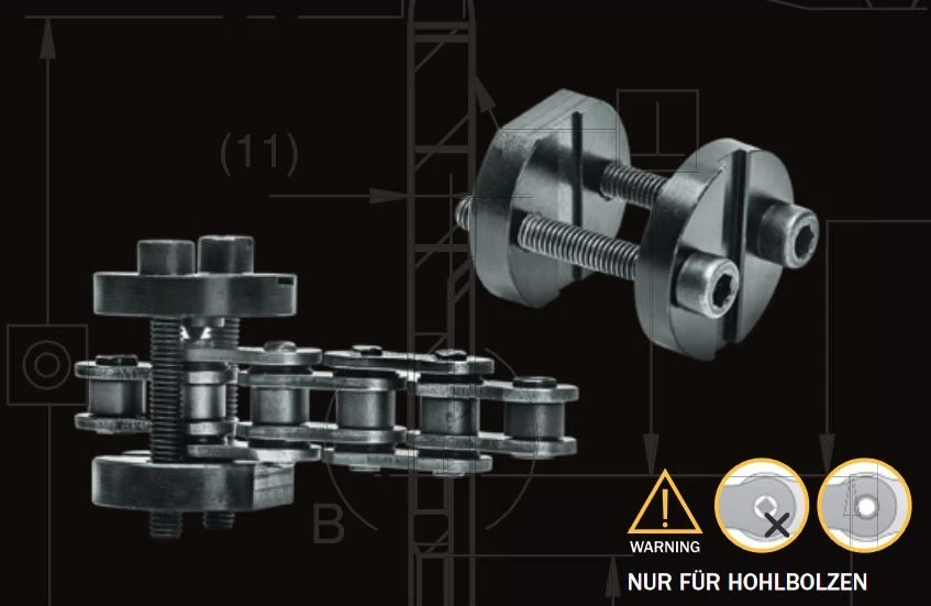 Wanneer de ketting wordt vervangen en er een nieuwe ketting gemonteerd moet worden, dan is een ketting klink apparaat noodzakelijk. Het AFAM Ketting Klink Apparaat is eenvoudig in gebruik.